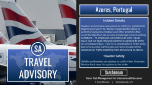 Whether it’s a protest, outbreak, travel disruption, or security incident, you can rest easy knowing SafeAbroad is continuously evaluating risks and communicating mitigation strategies to our clients.