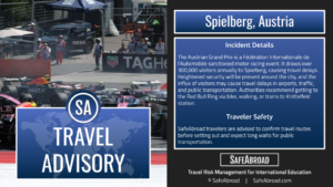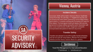 See this week’s global intelligence briefing for foresight into upcoming significant events for travelers around the globe. Our curated forecast equips you with analytical insights, helping you gain a clear understanding of potential impacts on your international education program.