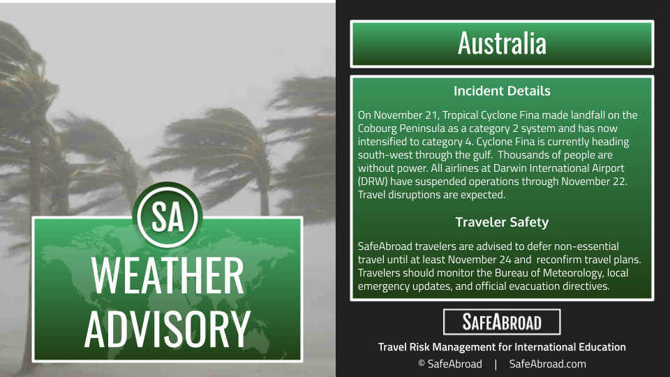 The national government declared a state of emergency until at least December 11 following the widespread flooding from Cyclone Senyar in Sumatra, Java, Borneo, Aceh, and North Sumatra. There are reports of at least 435 fatalities and 406 missing. This SoE allows more resources and first responders to be mobilized to address the disaster. An additional SoE has been issued in Northern Aceh until January 15. Travel disruptions are expected.