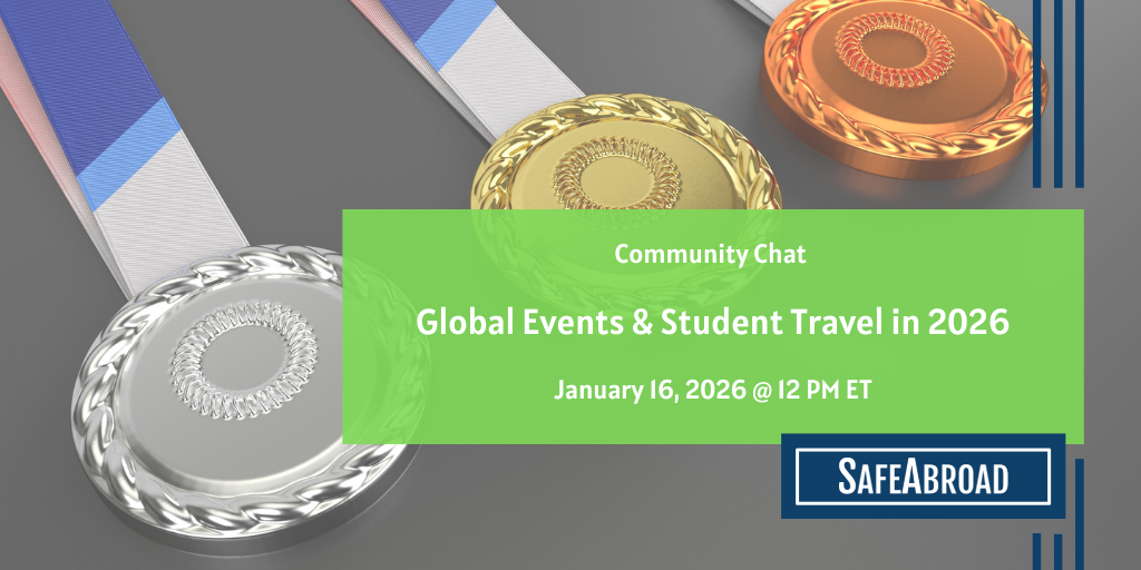 Join us for the SafeAbroad Monthly Briefing from 2:30-3:00 PM ET! Our team of Analysts will give a presentation recapping this month’s major events! This meeting gives you the chance to ask your SafeAbroad Analyst about current and upcoming risks. This month, SafeAbroad Analysts have highlighted key incidents worldwide, with featured topics from around the …